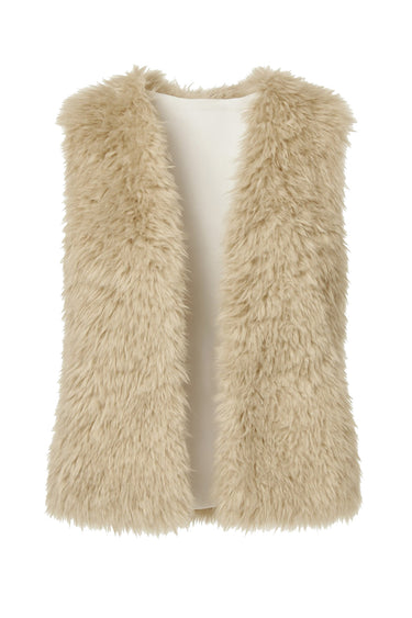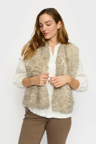 OBS! Fjernlager. Levering kan blive forlænget med 2-3 dage, hvis varen ikke findes i vores butik lige nu.Super lækker vest fra 2-Biz med en blød faux pelskvalitet og en let cropped længde.
