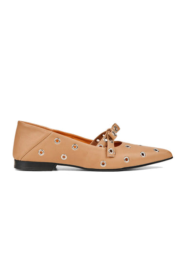 OBS! Fjernlager. Levering kan blive forlænget med 2-3 dage, hvis varen ikke findes i vores butik lige nu.Sko fra Munthe med elegante allover nitter og en smuk lille sløjfe hen over vristen. Disse sko er designet med en elegant spids næse og mulighed for at folde hælen ned, for en mere afslappet styling.