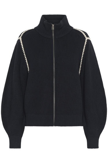 OBS! Fjernlager. Levering kan blive forlænget med 2-3 dage, hvis varen ikke findes i vores butik lige nu.Lækker strik fra Part Two med lange pufærmer, høj hals og lynlåslukning langs fronten. Strikken har også fine broderet detaljer og en afslappet silhuet.
