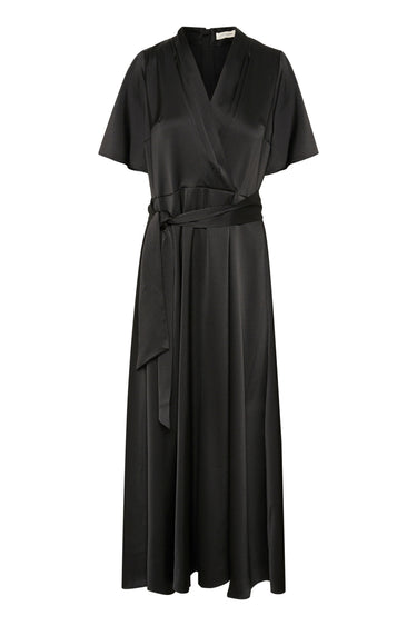 OBS! Fjernlager. Levering kan blive forlænget med 2-3 dage, hvis varen ikke findes i vores butik lige nu.Elegant kjole fra InWear med korte flæseærmer, v-udskæring i halsen og et bredt bindebælte i taljen.Kjolen har også den smukkeste kvalitet og et fint feminint snit.