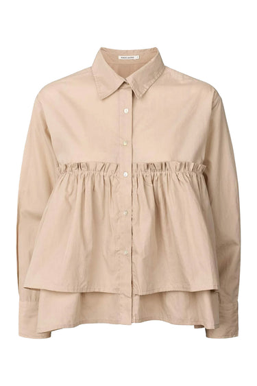 OBS! Fjernlager. Levering kan blive forlænget med 2-3 dage, hvis varen ikke findes i vores butik lige nu.Denne elegante flæseskjorte fra Rabens Saloner balancerer ubesværet et klassisk og legende udtryk.Skjorten er lavet i et let, sprødt materiale. Designet er defineret af en klassisk, regulær pasform med lange ærmer, knaplukning foran og en krave. Den er detaljeret med sofistikerede flæser foran og bagpå, der giver karakter til skjorten.