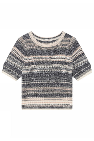 OBS! Fjernlager. Levering kan blive forlænget med 2-3 dage, hvis varen ikke findes i vores butik lige nu.Flot strik fra Gustav med korte ærmer, bådudskæring i halsen og et super fint mønster i skønne farver.