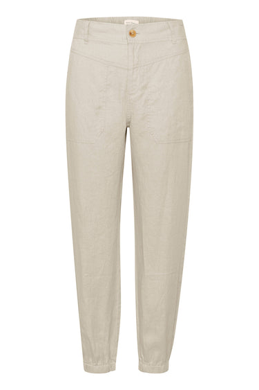 - OBS! Fjernlager. Levering kan blive forlænget med 2-3 dage, hvis varen ikke findes i vores butik lige nu.Enkle hør bukser fra Part Two med en flot silhuet, en bred kant i taljen og en dejlig let kvalitet.