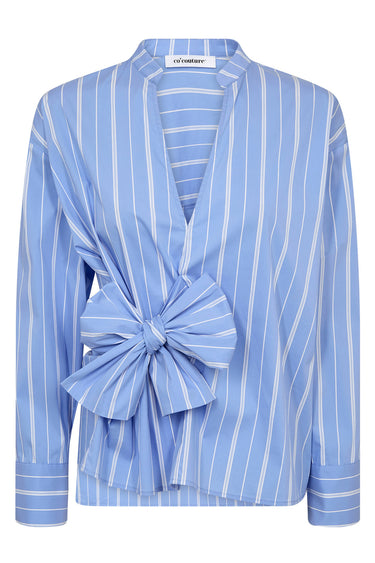 ShiraCC Stripe Bow VBlouse 23Pale Blue