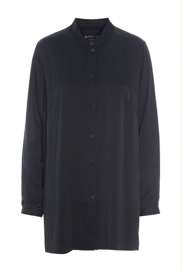 OBS! Fjernlager. Levering kan blive forlænget med 2-3 dage, hvis varen ikke findes i vores butik lige nu.Enkel skjorte fra Bitte Kai Rand i den lækreste, bløde silke, der er helt vidunderlig at have på. Skjorten har et enkelt og sofistikeret udtryk. Den er tidløs og tilfører et strejf af underspillet luksus til ethvert sæt tøj. Skjorten er relativt lang og vil derfor også kunne bruges som meget kort kjole.