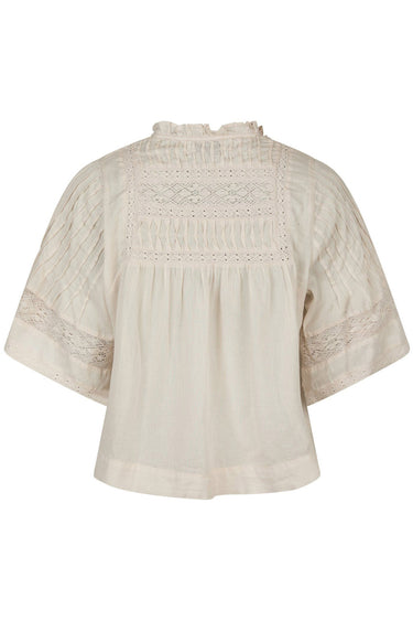 Feminin bluse fra Neo Noir med ½ lange flæseærmer, rund hals med v-udskæring og de smukkeste broderet detaljer.