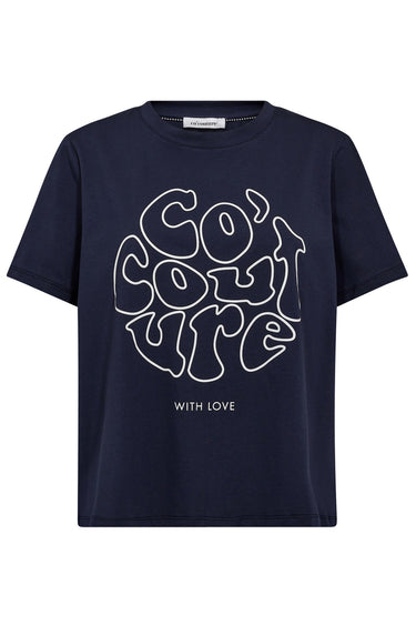 OBS! Fjernlager. Levering kan blive forlænget med 2-3 dage, hvis varen ikke findes i vores butik lige nu.Smart tee fra Co'couture med korte ærmer, rund hals og cool print på fronten.