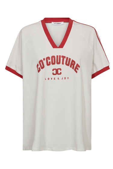 OBS! Fjernlager. Levering kan blive forlænget med 2-3 dage, hvis varen ikke findes i vores butik lige nu.Cool sporty tee fra Co'couture med korte ærmer og v-udskæring i halsen.