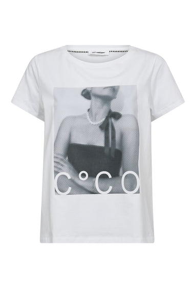 OBS! Fjernlager. Levering kan blive forlænget med 2-3 dage, hvis varen ikke findes i vores butik lige nu.Elegant tee fra Co'couture med korte ærmer, rund hals og et flot grafisk motiv på fronten.