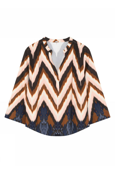 OBS! Fjernlager. Levering kan blive forlænget med 2-3 dage, hvis varen ikke findes i vores butik lige nu.Flot skjortebluse fra Gustav med lange ærmer, rund hals med v-udskæring og et smukt mønstret print.