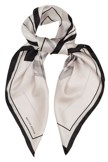- OBS! Fjernlager. Levering kan blive forlænget med 2-3 dage, hvis varen ikke findes i vores butik lige nu.Smukt silke tørklæde fra Bruuns Bazaar med et flot grafisk print.