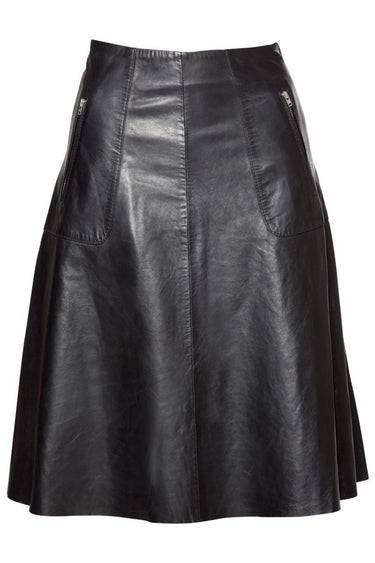 - A-formet midi nederdel i læder. Lukkes med lynlås i siden og har to sidelommer med lynlåslukning.Pasform: Regulær pasform.Materiale: 100% Lamb leather.Vask: Må ikke vaskes. Rens ved skindspecialist.
