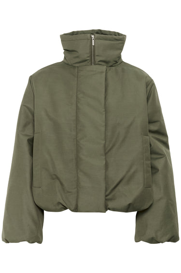 OBS! Fjernlager. Levering kan blive forlænget med 2-3 dage, hvis varen ikke findes i vores butik lige nu.Cool jakke fra Soaked In Luxury med et boxy snit, lange ærmer og høj hals.Jakken har også smart puf i ærmerne, skjult lynlås og knaplukning langs fronten og lommer i siderne.