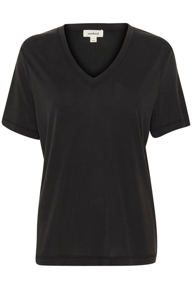 OBS! Fjernlager. Levering kan blive forlænget med 2-3 dage, hvis varen ikke findes i vores butik lige nu.Fin basis tee fra Soaked In Luxury med korte ærmer og v-udskæring i halsen.