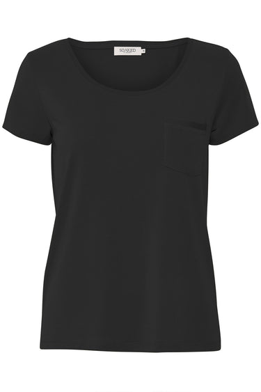 - OBS! Fjernlager. Levering kan blive forlænget med 1-2 dage, hvis varen ikke findes i vores butik lige nu.Smart basis t-shirt fra Soaked In Luxury med korte ærmer, rund hals og en fin lille lomme på brystet.