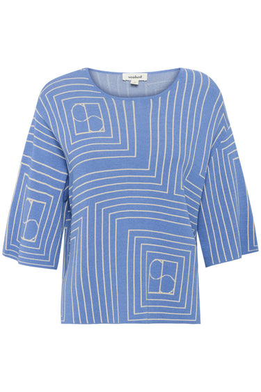 - Model: Slindianna Medea Pullover Ss Strik 30408407 Blue Yonder W Oatmeal Monogram
