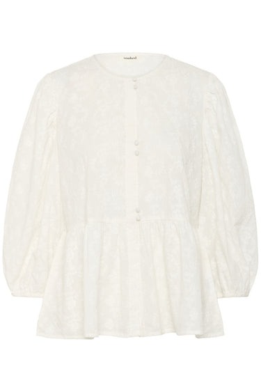 OBS! Fjernlager. Levering kan blive forlænget med 2-3 dage, hvis varen ikke findes i vores butik lige nu.Elegant bluse fra Soaked In Luxury med rund hals, ¾ lange ærmer og knaplukning over brystet.Blusen har også en afslappet silhuet og den smukkeste broderet kvalitet.