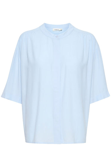 - OBS! Fjernlager. Levering kan blive forlænget med 2-3 dage, hvis varen ikke findes i vores butik lige nu.Elegant bluse fra Soaked In Luxury med korte ærmer, kinakrave i halsen og skjult knaplukning langs fronten.