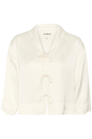 OBS! Fjernlager. Levering kan blive forlænget med 2-3 dage, hvis varen ikke findes i vores butik lige nu.Feminin skjortebluse fra Soaked In Luxury med ½ lange ærmer, v-udskæring i halsen og en cropped længde.Blusen har også den lækreste kvalitet og lukkes med små bindesnore langs fronten.