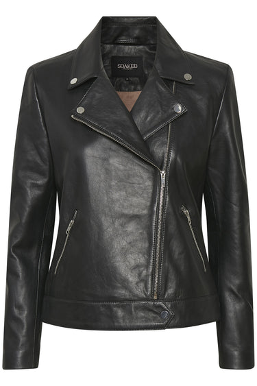 OBS! Fjernlager. Levering kan blive forlænget med 1-2 dage, hvis varen ikke findes i vores butik lige nu.Lækker skindjakke fra Soaked In Luxury med lange ærmer, en flot krave om halsen og en klassisk asymmetrisk lynlås i fronten. Jakken er også detaljeret med nitter og lynlåslommer i siderne.