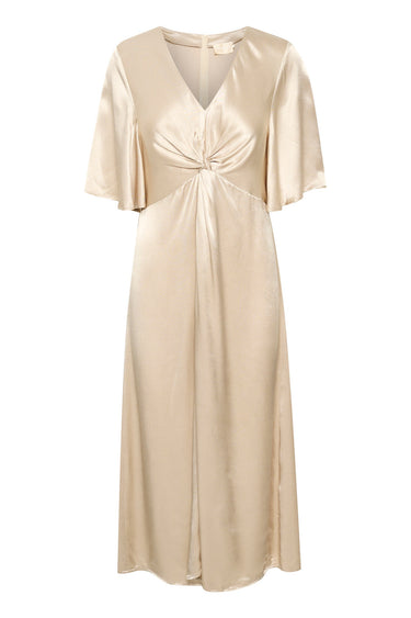 OBS! Fjernlager. Levering kan blive forlænget med 2-3 dage, hvis varen ikke findes i vores butik lige nu.Smuk kjole fra Soaked In Luxury med ½ lange flæseærmer, v-udskæring i halsen og fine draperet effekter over brystet.