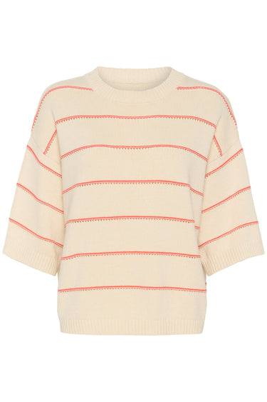 SLRava Romy Pullover White and Hot Coral Stripe