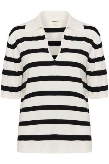 SLSpina Striped Polo Pullover Broken White w Black Stripe