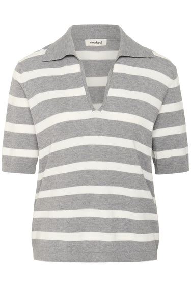 SLSpina Striped Polo Pullover Grey Melange w Broken White