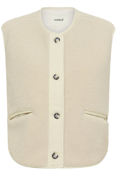 OBS! Fjernlager. Levering kan blive forlænget med 2-3 dage, hvis varen ikke findes i vores butik lige nu.Smart oversized vest fra Soaked In Luxury med rund hals, knaplukning langs fronten og en lækker plysset kvalitet.