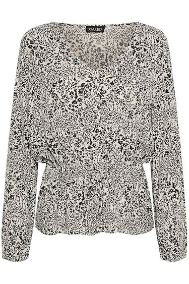 SLZaya Drawstring Blouse Black and White Ditsy Print 30406976