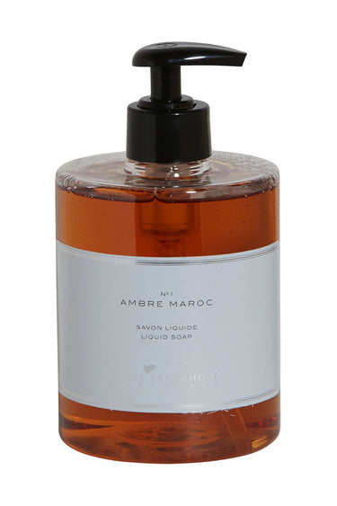 - OBS! Fjernlager. Levering kan blive forlænget med 2-3 dage, hvis varen ikke findes i vores butik lige nu.Heartmades Ambre Maroc flydende sæbe har en krydret og træagtig duft.Duften repræsenterer farverne og atmosfæren i Marokko kombineret med skandinavisk renhed og æstetik. Den indeholder noter af vanilje, labdanum, patchouli, rav, rose, kanel, jasmin og til sidst perfektioneret med blomme, bergamot og pink peber.