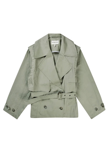 OBS! Fjernlager. Levering kan blive forlænget med 2-3 dage, hvis varen ikke findes i vores butik lige nu.En alsidig, kort trenchcoat fra Munthe med en flatterende talje med bælte og sidelommer. Denne jakke er designet med mulighed for at tage ærmerne af og style jakken som en vest.