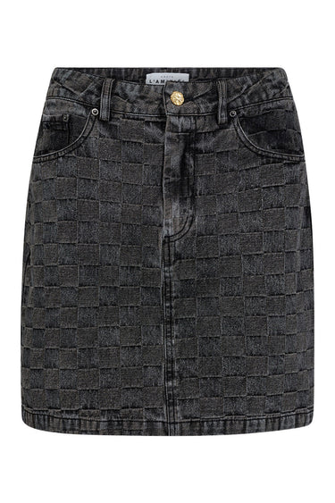 OBS! Fjernlager. Levering kan blive forlænget med 2-3 dage, hvis varen ikke findes i vores butik lige nu.Cropped denim nederdel fra Haute L'amitié med et klassisk snit og en smart mønstret kvalitet.