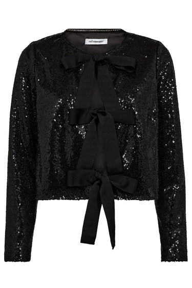 StevieCC Sequin LS Bow Blouse 96Black 35676