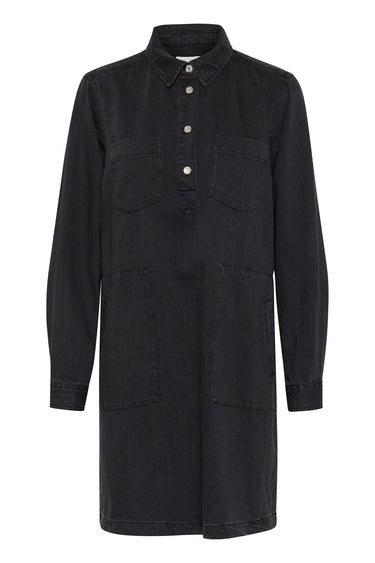 - Smart denim kjole fra Part Two med lange ærmer, skjortekrave i halsen og store lommer på brystet. Kjolen har også en løs silhuet og lukkes med knapper over brystet.