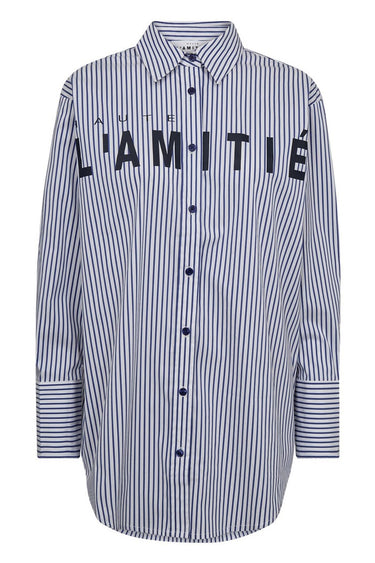 OBS! Fjernlager. Levering kan blive forlænget med 2-3 dage, hvis varen ikke findes i vores butik lige nu.Smart skjorte fra Haute L'Amitié med lange ærmer, krave i halsen og knaplukning langs fronten.Skjorten har også et klassisk stribet print og et cool logo på brystet.