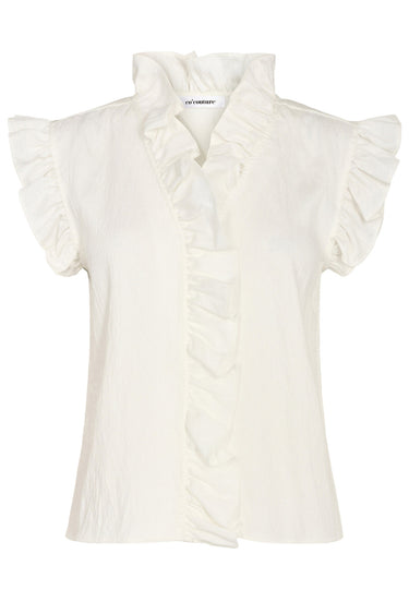 - Feminin top fra Co'couture med skønne flæsekanter omkring ærmerne, halsen og langs knappanelet i fronten.