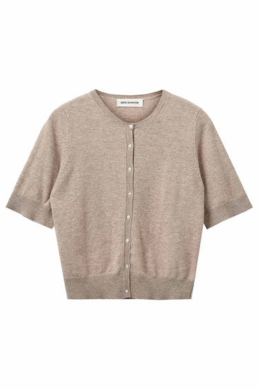 - OBS! Fjernlager. Levering kan blive forlænget med 2-3 dage, hvis varen ikke findes i vores butik lige nu.Sød cardigan fra Sofie Schnoor med korte ærmer, rund hals og fine knapper langs fronten.