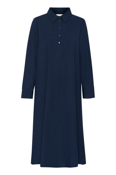 - OBS! Fjernlager. Levering kan blive forlænget med 2-3 dage, hvis varen ikke findes i vores butik lige nu.Smart skjortekjole fra My Essential Wardrobe med lange ærmer, krave i halsen og knaplukning over brystet.