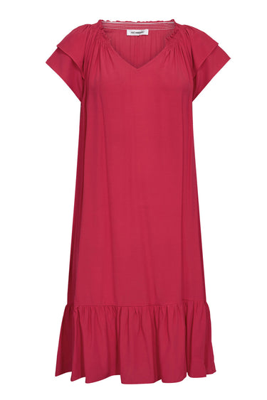 Co'couture's klassiske Sunrise kjole med skønne korte ærmer, v-hals og flotte flæser i bunden af skørtet. Kjolen har også en behagelig afslappet silhuet og en lækker blød kvalitet.