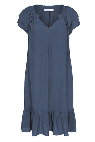 Co'couture's klassiske Sunrise kjole med skønne korte ærmer, v-hals og flotte flæser i bunden af skørtet. Kjolen har også en behagelig afslappet silhuet og en lækker blød kvalitet.
