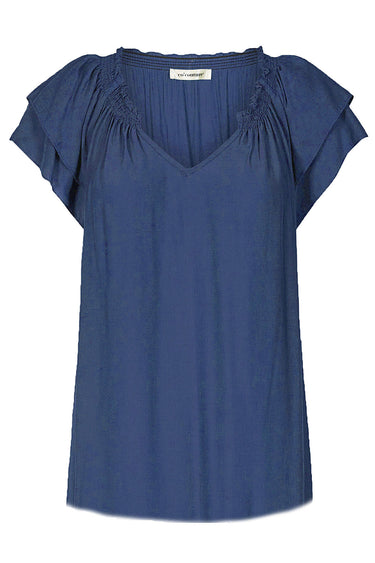 OBS! Fjernlager. Levering kan blive forlænget med 1-2 dage, hvis varen ikke findes i vores butik lige nu.Co'coutures klassiske sunrise top med flotte korte ærmer, v-hals og en lækker blød kvalitet.