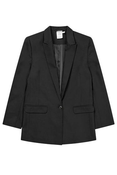 Cool og klassisk blazer fra Munthe med lange ærmer, en flot krave og lommeflapper. Blazeren lukkes i fronten med knap.