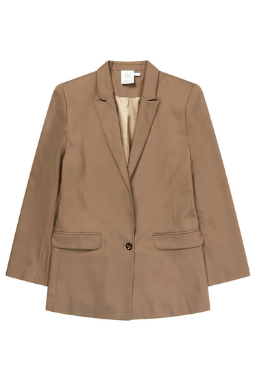 Cool og klassisk blazer fra Munthe med lange ærmer, en flot krave og lommeflapper. Blazeren lukkes i fronten med knap.