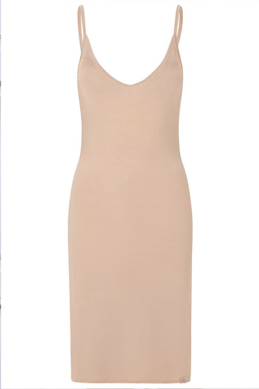 Kjolen har tynde skulderstropper og blød v-hals. - Pasform: Tætsiddende