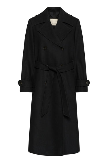 OBS! Fjernlager. Levering kan blive forlænget med 2-3 dage, hvis varen ikke findes i vores butik lige nu.Klassisk frakke fra Part Two med lange ærmer, en bred krave i halsen og et bredt bindebælte i taljen.Frakken har også fine remme omkring ærmerne og store knapper langs fronten.