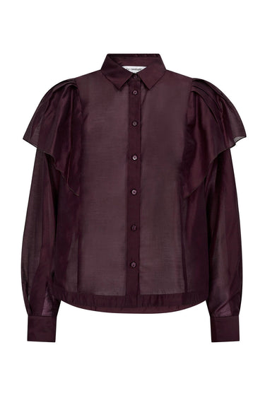 OBS! Fjernlager. Levering kan blive forlænget med 2-3 dage, hvis varen ikke findes i vores butik lige nu.Elegant bluse fra Co'couture med lange ærmer, rund hals med en lille skjortekrave og smukke detaljer omkring skulderne.Blusen har også en let transparent kvalitet og lukkes med små knapper langs fronten.