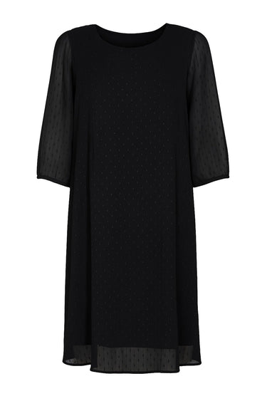 OBS! Fjernlager. Levering kan blive forlænget med 1-2 dage, hvis varen ikke findes i vores butik lige nu.Sød kjole fra 2-biz med rund hals, 7/8 del lange ærmer og smukke tone i tone prikker.