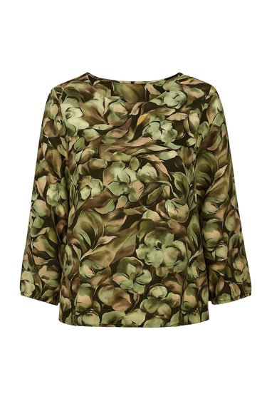 OBS! Fjernlager. Levering kan blive forlænget med 2-3 dage, hvis varen ikke findes i vores butik lige nu.Flot bluse fra 2-Biz med ¾ langeærmer, rund hals og et super fint print.