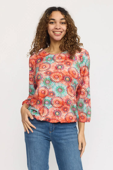 - OBS! Fjernlager. Levering kan blive forlænget med 2-3 dage, hvis varen ikke findes i vores butik lige nu.Super fin bluse fra 2-Biz med lange ærmer, rund hals og et smart print i flotte farver.